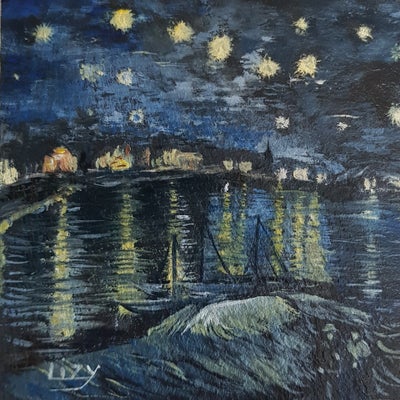Miniatuurtje op leisteen (Van Goghs Sterrennacht boven de Rhone)
