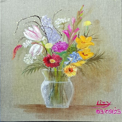 Verschillende technieken en materialen uitproberen heeft me steeds geïnteresseerd en gestimuleerd. Ook af en toe eens zelf een compositie maken is dan aan de orde. En zo ontstaan dan de stillevens.